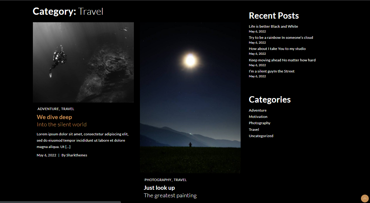 BlogJr Dark is a dark minimal designed, very light weight and easy to use clean and masonry blog theme. This theme is focused on photography and personal blogs. It is a child theme of BlogJr.
